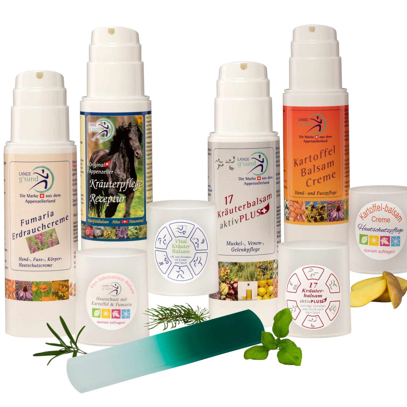 4 Appenzeller Balsam, je 150ml, inkl. GRATIS Hornhaut-Glasnagelfeile