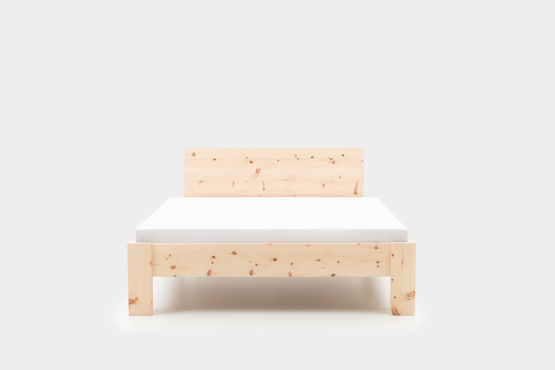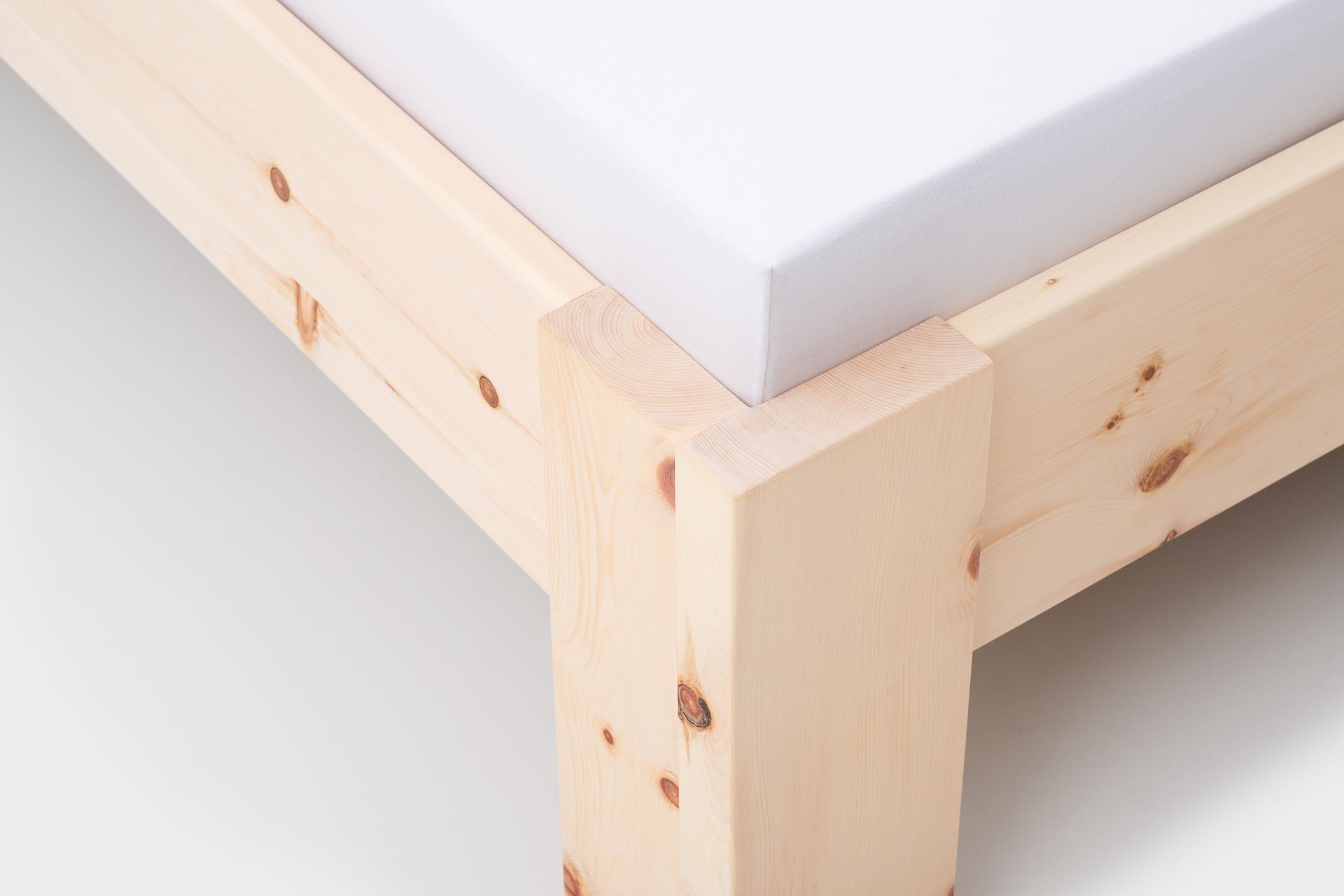 Das metallfreie Zirbenbett St. Moritz wird aus Massivholz mit durchgehenden Lamellen gefertigt, um die natürliche Holzstruktur zu bewahren.